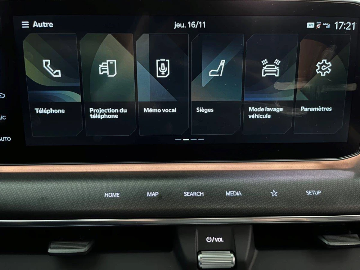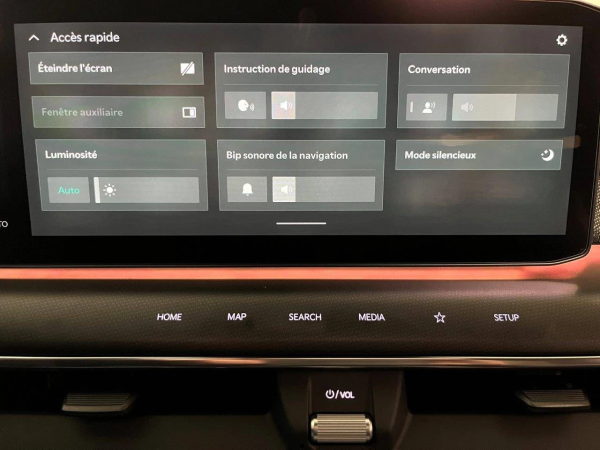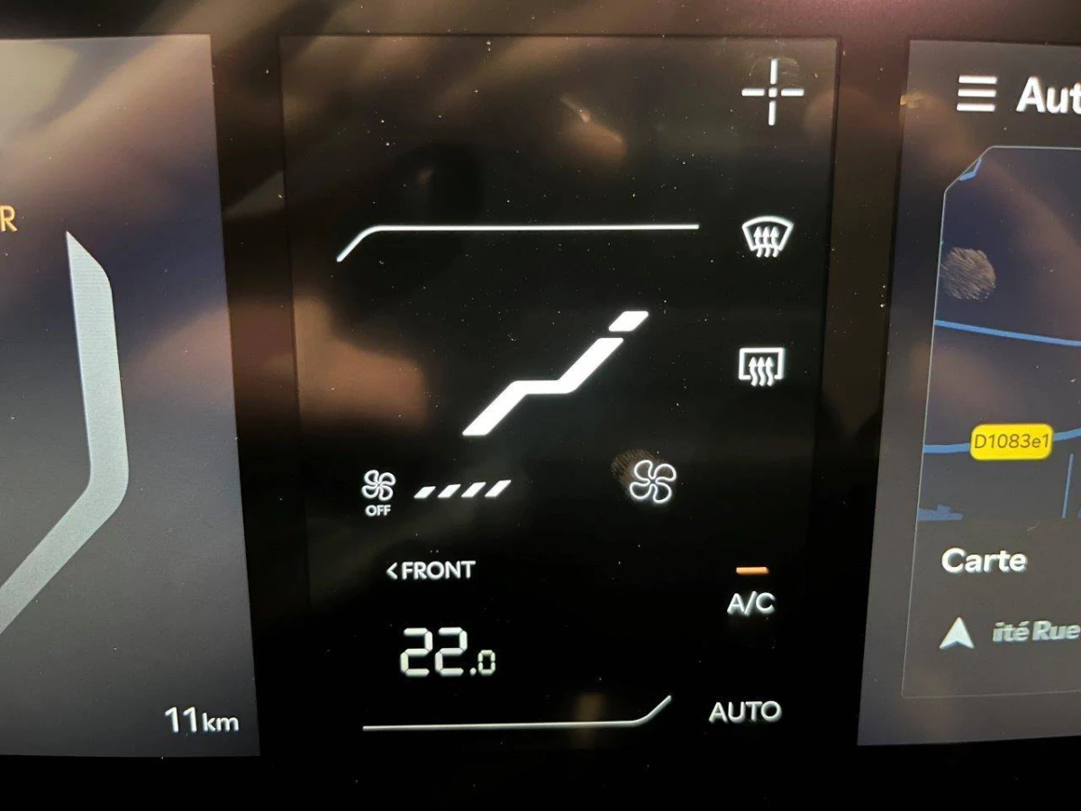 - Triple écran panoramique, intégrant un ordinateur de bord Supervision de 12,3", un écran d'affichage des réglages de confort de 5,1"et un écrantactile d'info-divertissement de 12,3" compatible Android Auto et AppleCarPlay