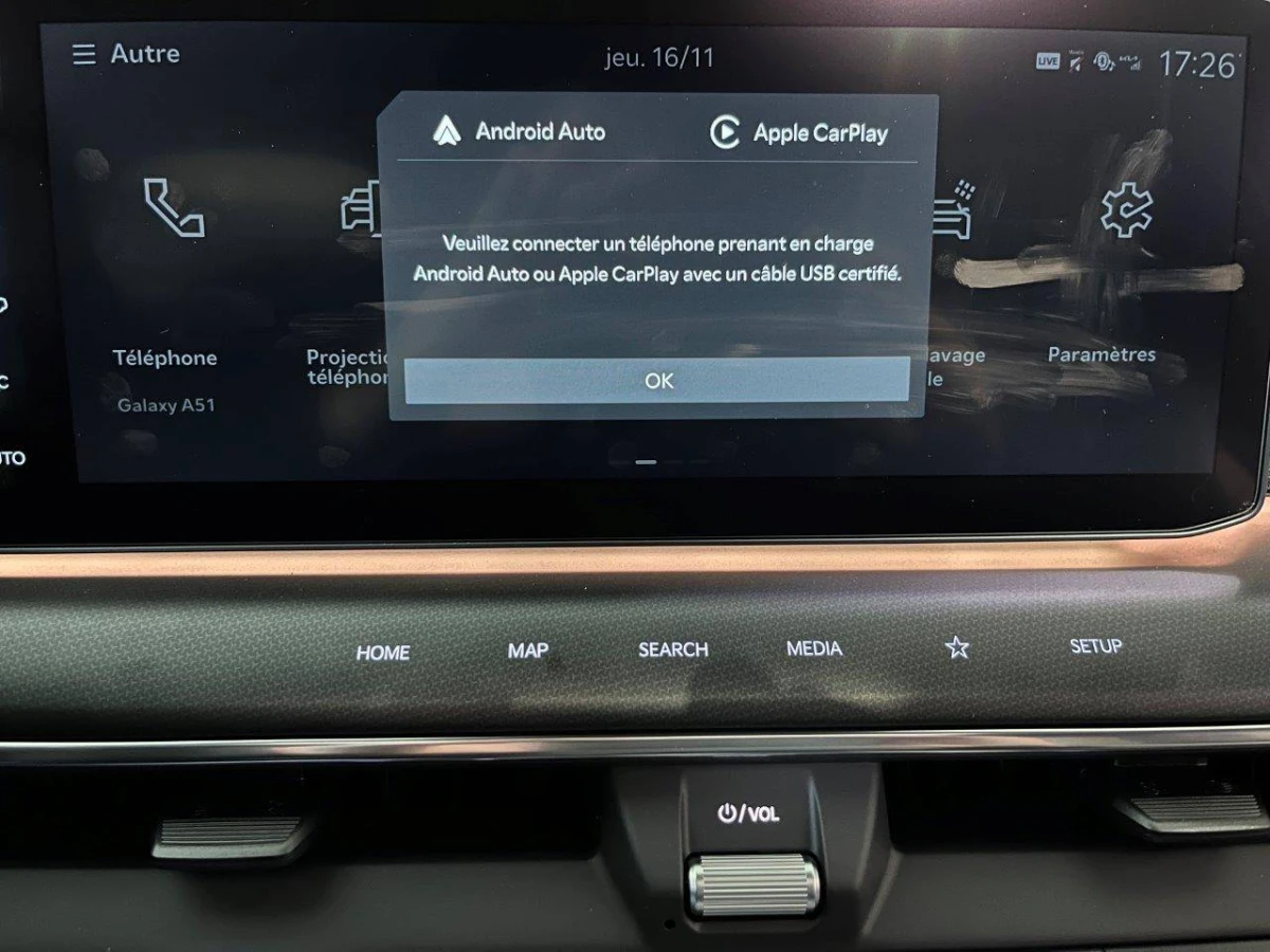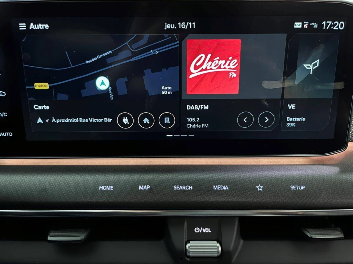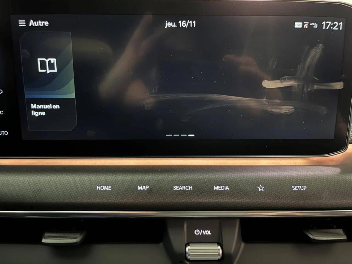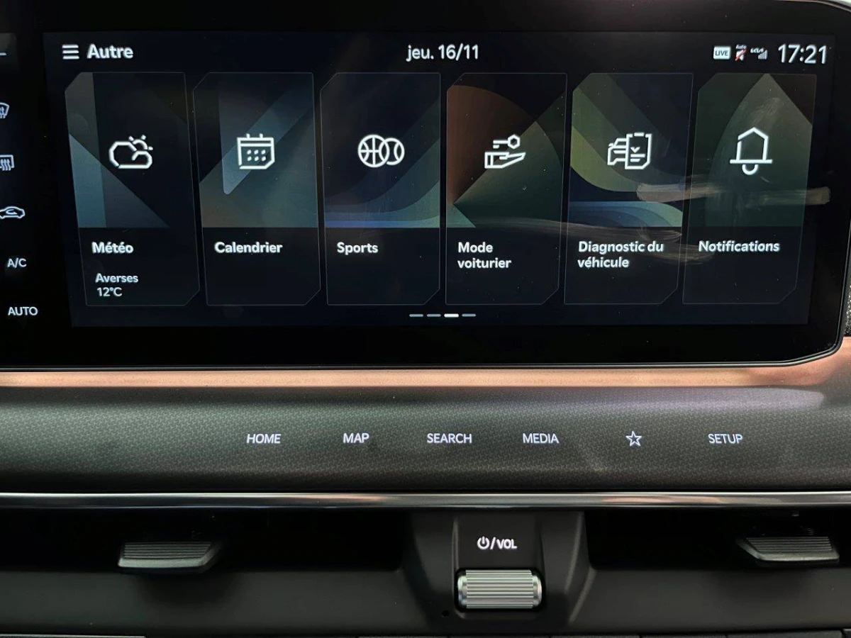 - Triple écran panoramique, intégrant un ordinateur de bord Supervision de 12,3", un écran d'affichage des réglages de confort de 5,1"et un écrantactile d'info-divertissement de 12,3" compatible Android Auto et AppleCarPlay
