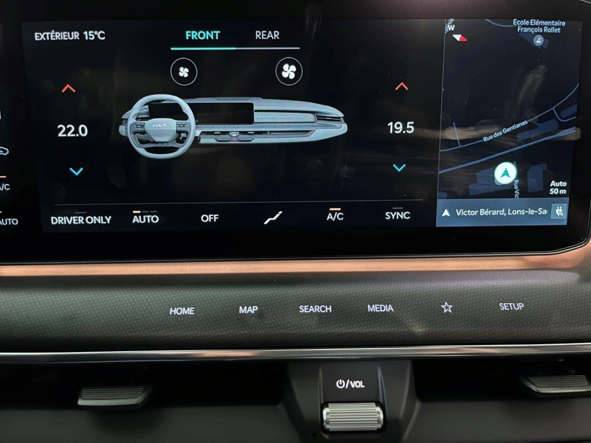 - Géolocalisation des bornes de recharge via la navigation embarquée et les services connectés Kia Connect Live