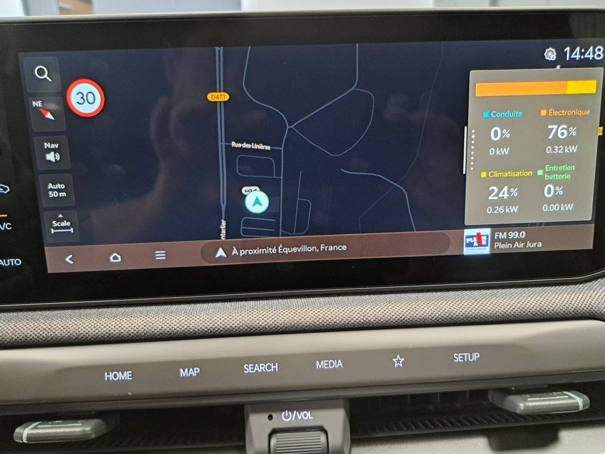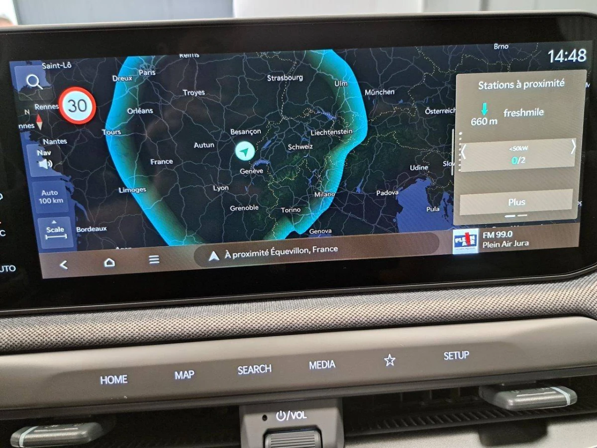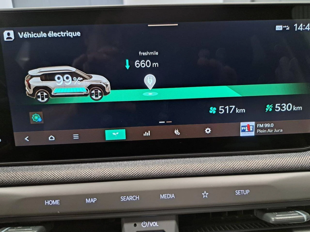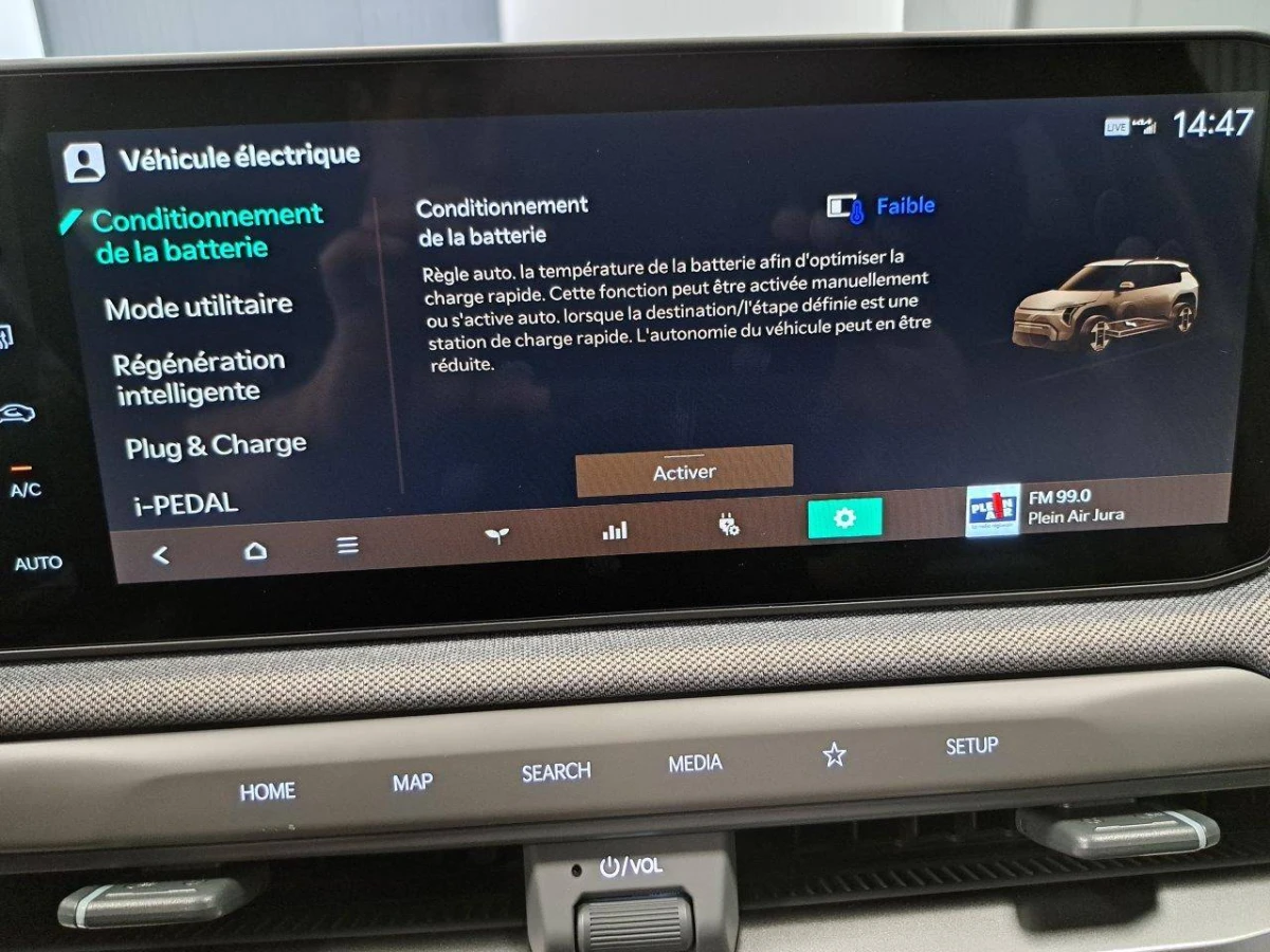 - Géolocalisation des bornes de recharge via la navigation embarquée et les services connectés Kia Connect Live